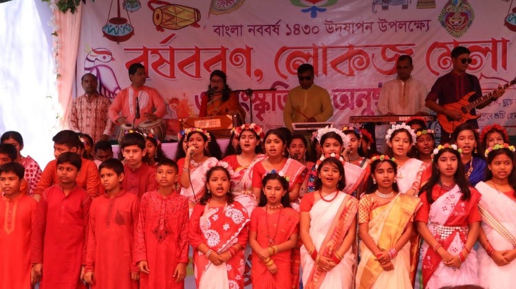 বর্ষবরণ অনুষ্ঠানে স্থানীয় শিল্পীদের পরিবেশনায় মনোজ্ঞ সাংস্কৃতিক অনুষ্ঠান অনুষ্ঠিত হয়।